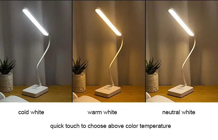 Материалы: АБС-пластик, силикон Входное напряжение: DC5V Источник света: светодиодный SMD Цветовая температура: 3000K,4000K,6000K в одном светильник Потребляемая мощность: 2,5 Вт Режим управления: сенсорный для изменения цветовой температуры или удержания для неограниченного затемнения Пожалуйста, обратите внимание, что 6,99 долл. США-это питание от USB, которое необходимо подключить к USB 5 В для работы. $8,99-это зарядка через USB. Заряжаемый литиевый аккумулятор внутри. И DC5V USB адаптер не входит в комплект.