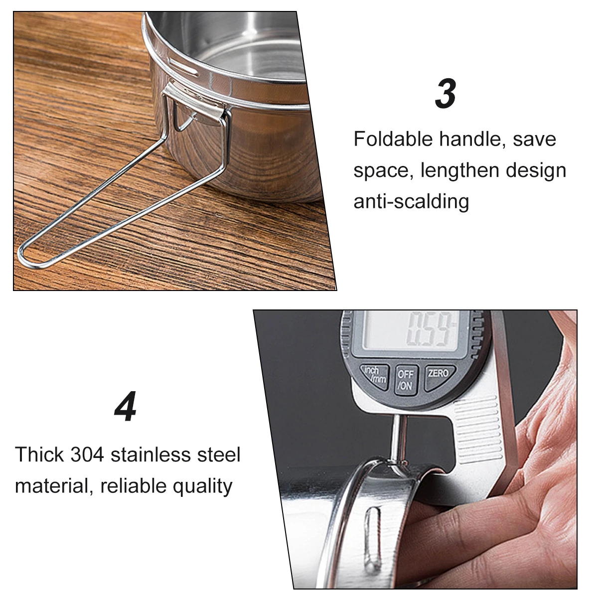 -Складная и утолщенная ручка из нержавеющей стали предотвращает обжигание, более безопасная и надежная.