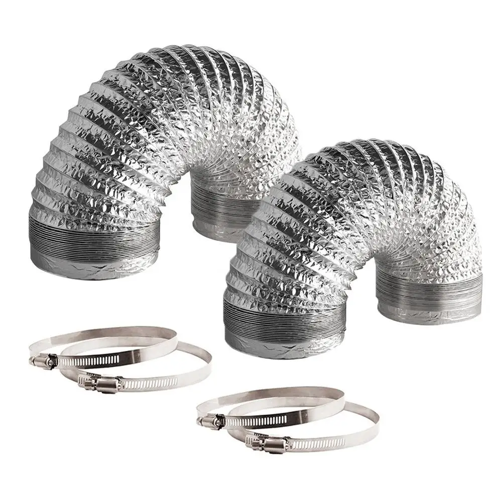 Гибкий воздуховод из алюминиевой фольги осушитель вентиляционный шланг для вентиляции HVAC с 2 зажимами Размер воздуховода: 4 дюйма (диаметр) x 16 футов 5 метров (длина), когда полностью расширен, 6 дюймов (диаметр) x 16 футов 5 метров (длина), когда полностью расширен, 8 дюймов (диаметр) x 16 футов 5 метров (длина), когда полностью расширен Тепловая выносливость: диапазон температур от 0 ~ 185 °F. (-18 ℃ ~ 85 ℃) Широкое применение: кухни, ванные комнаты, теплицы, комнаты для выращивания, палатки для выращивания и т. д. Простая установка: бесплатная пара металлических зажимов 4 дюйма/6 дюймов/8 дюймов, изготовленных из нержавеющей стали. Гибкая длина для вытяжного вентилятора/встроенный вентилятор Огнестойкое покрытие: гибкий вентиляционный канал изготовлен из высококачественного огнестойкого алюминия и встроенной коррозионно-стойкой проволочной спирали для усиления и долговечности