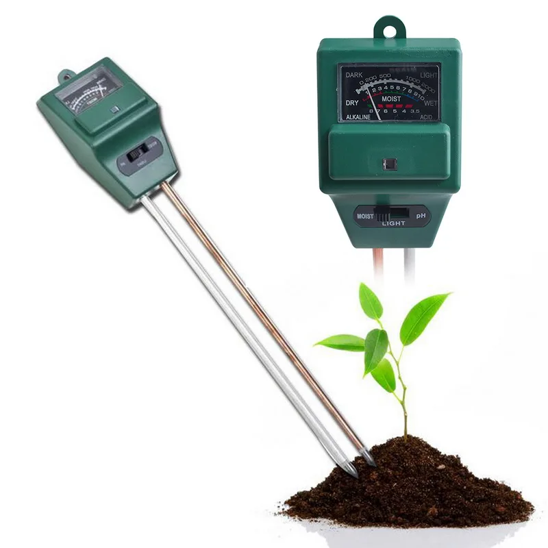** Функция: 3 в 1 дизайн, может использоваться для измерения содержания влаги в грунте, определить, получает ли растение адекватный светильник, и контролировать уровень PH в грунте, кислой или щелочной подходит для ваших растений.
