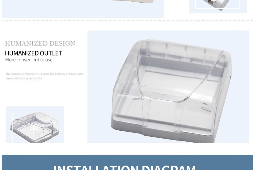 > Цвет: черный/белый/прозрачный > Аксессуары продукта: губка > Материал: Поликарбонат огнестойкий материал > Размеры: 10*11,8*4,5 длина * ширина * высота > Расстояние установки отверстия: 60 мм > Диапазон применения: светильник с гнездом/дверной звонок с откидной крышкой/ванная комната/переключатель для кухни > Характеристики: водонепроницаемый/портативный/хорошее качество
