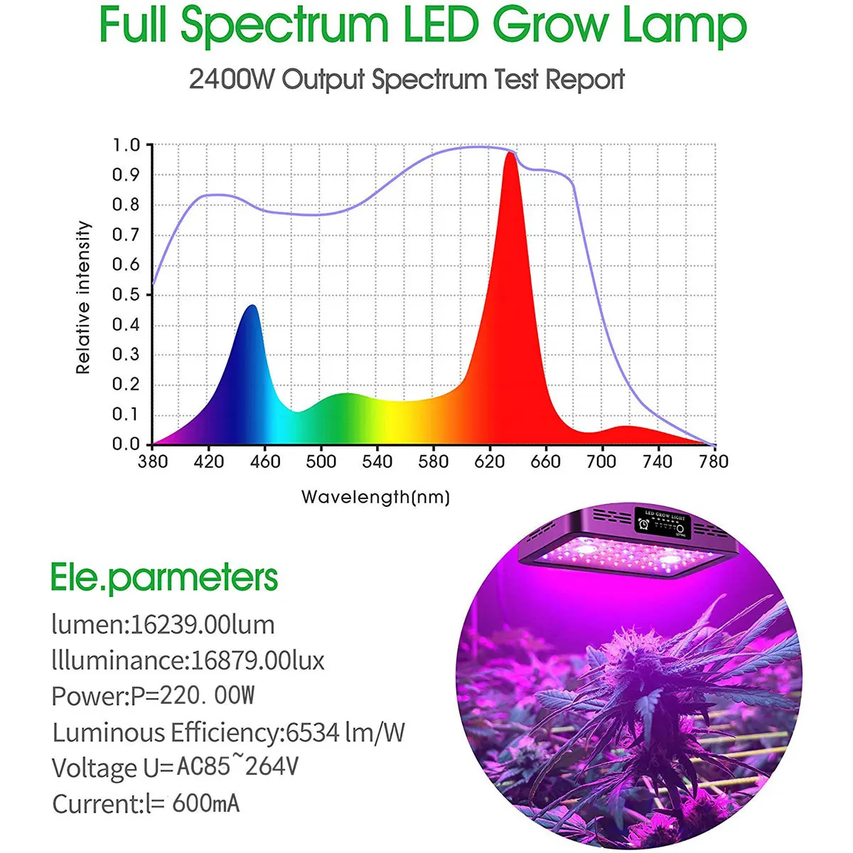 Светодиодный светильник для выращивания растений с двумя режимами цветения и роста 2400 Вт