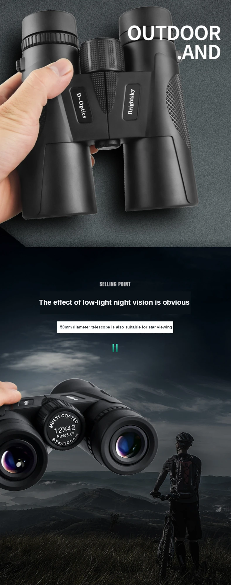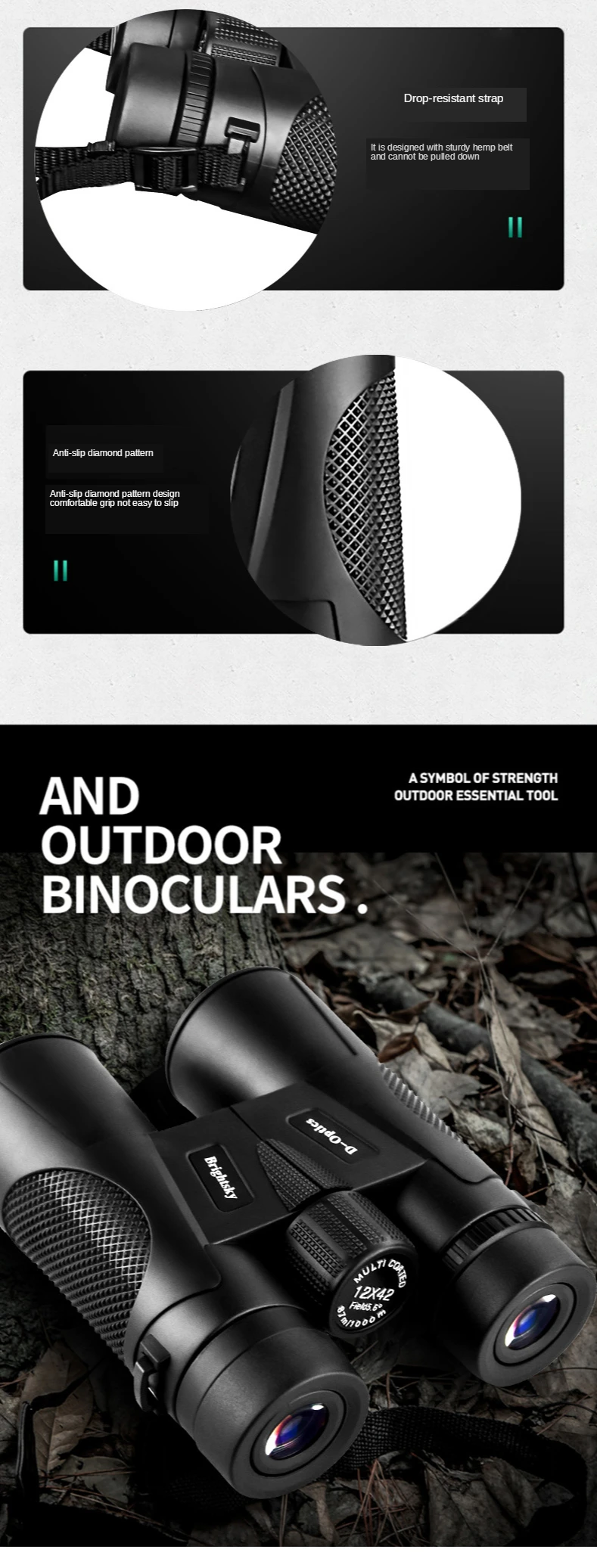 Новые 12x42 бинокли с фиксированным зумом HD 10000 м высокая мощность ночного видения переносные телескопы наружный Туризм Бинокль для охоты