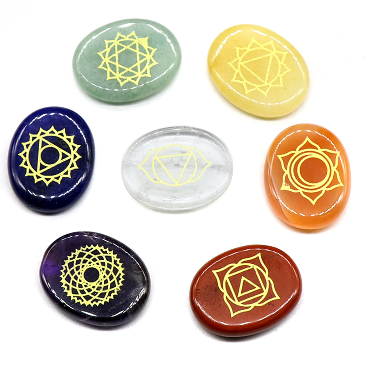 1. Включает в себя 7 Чакр: аметист (Коронная Чакра), прозрачный кристалл (чакра третьего глаза), лазурит (чакра горла), зеленый авантюрин (Чакра сердца), желтый нефрит (солнечное сплетение), сердолик (Сакральная чакра), Красная Яшма (корневая чакра).