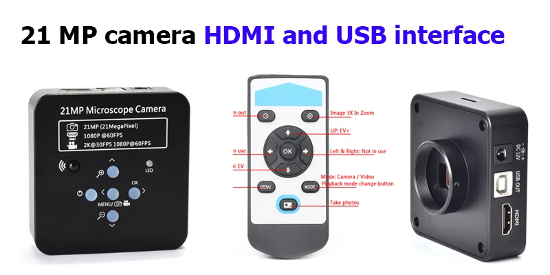 1. Камера 2,0 МП. Интерфейс VGA и HDMI. Они могут только смотреть 2. Камера 16 MP/ 21 MP/ 34 MP/ 4K. Интерфейс HDMI и USB. Они могут быть подключены к ПК через интерфейс USB. Они могут делать фотографии, измерять и видео и т. Д.
