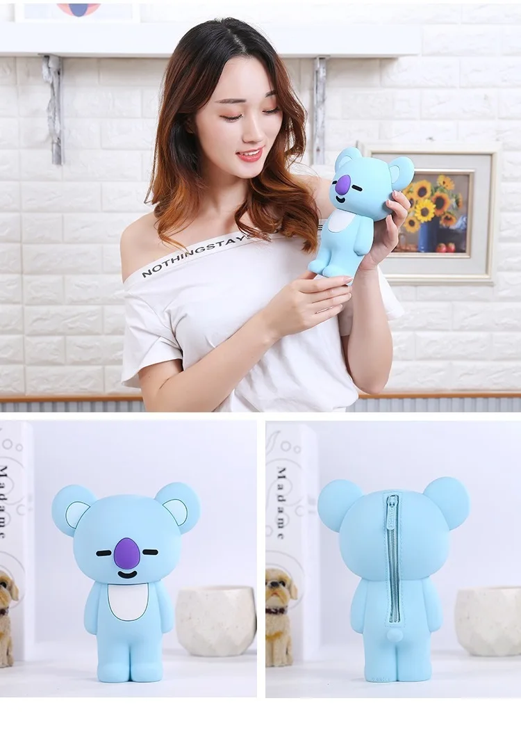 Мультяшный силиконовый чехол-карандаш, контейнер, сумки-карандаши, милый коричневый медведь, кролик, коала, 3D чехол-карандаш, школьные принадлежности, Канцтовары, подарки