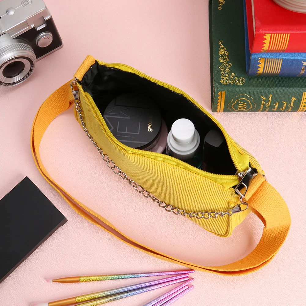 Модная Вельветовая сумка через плечо, Женская однотонная сумка с цепочкой, элегантная сумка на молнии, маленькая сумка на плечо