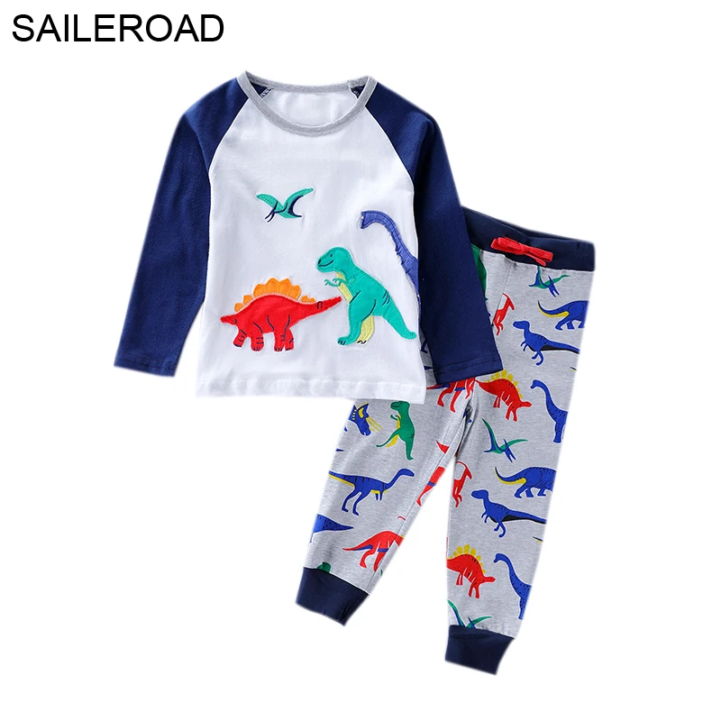 SAILEROAD/футболка для маленьких мальчиков детская одежда из бутика, комплекты вышивкой в виде динозавра; Детская одежда Корейском стиле осенняя одежда для мальчиков для Осенняя детская одежда костюмы