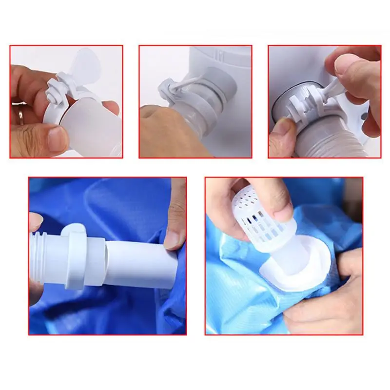 Обратите внимание, что верхний интерфейс фильтрующего насоса-это вход для воды, который подключен к нижней розетке бассейна; Нижний интерфейс фильтрующего насоса-это выход для воды, который подключен к верхней розетке бассейна.