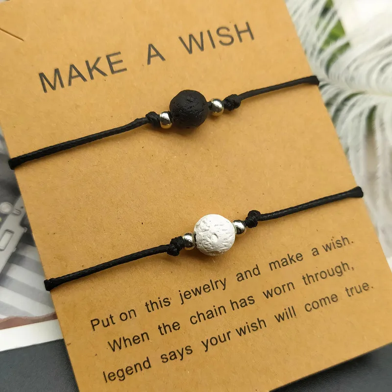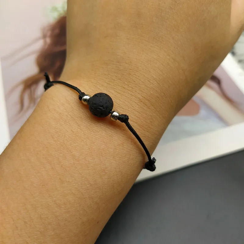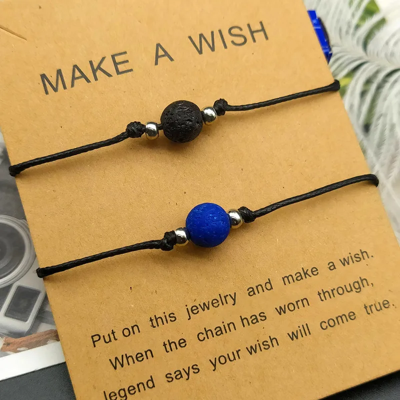 2 шт./компл., цвет, лава, камень, натуральный камень, браслет из бисера, Черная веревка, плетение, пара, браслеты для мужчин и женщин, ювелирные изделия, оптовая продажа