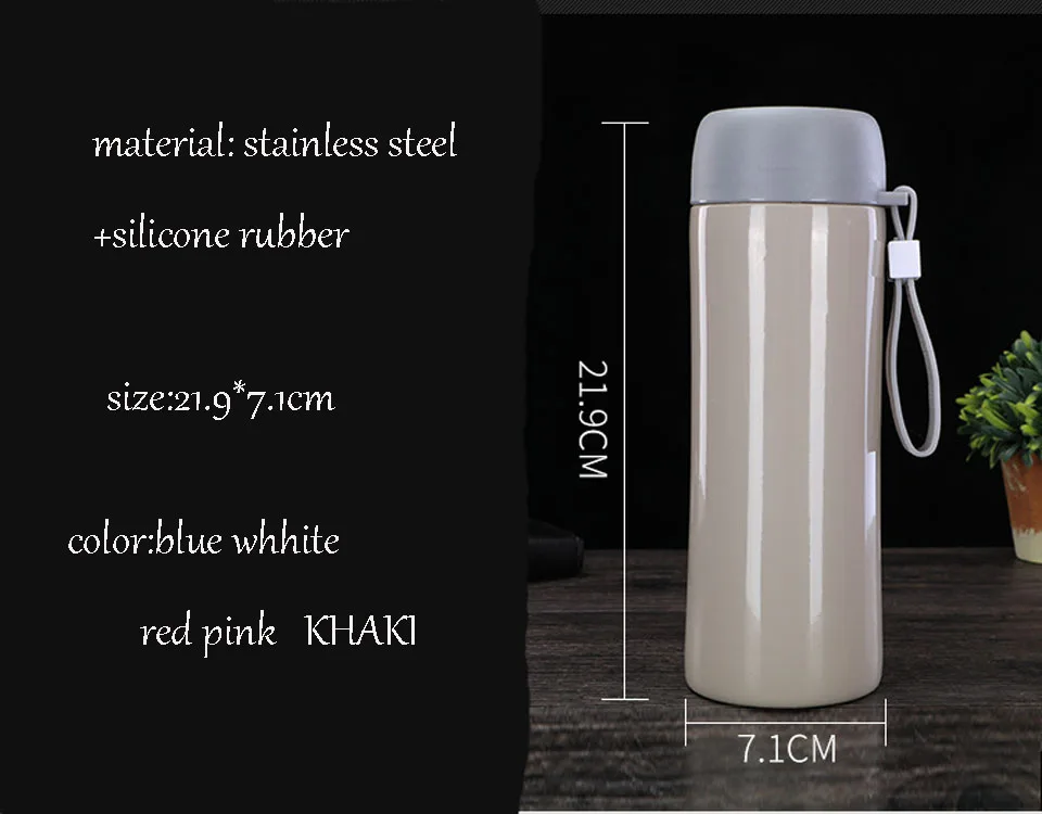 Номер товара: WB2718 Цвет: белый/коричневый/синий/серый/розовый Материал: 201 нержавеющая сталь Размер: 21,9*7,1 см Емкость: 360 мл Время сохранения тепла: 6-12 ч Упаковка: упаковка коробки Диапазон использования: дома, офиса, школы, спорта на открытом воздухе, в автомобиле Подарки Для Семьи друзьям