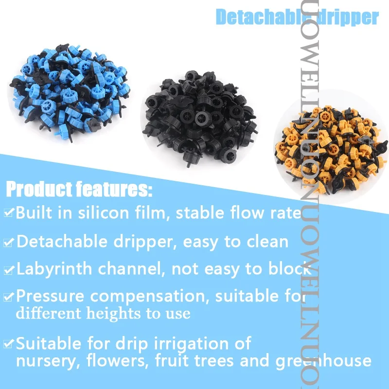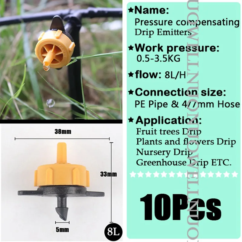 -Тип: автоматические садовые наборы для полива -Материал: ПП-пластик -Поток: 2L & 4L & 8L -Размер шланга: шланг 4/7 мм -Набор инкубаторов: * 4/7 мм шланг X 10 ~ 50 м * Дриппер X12 ~ 56 * Универсальный Шарнир X 1 * Quick jiont X 2 * 4/7 мм тройник X 12 ~ 56 * 4/7 мм кронштейн шланга X 12 ~ 56 * 4/7 мм шланг штекер X 2 * PTFE Лента X 1 -Применение: ①Орошение сада ②Фрукты дерево и овощи орошение ③ Капельное орошение в питомнике ④Охлаждение животноводства и т. Д.