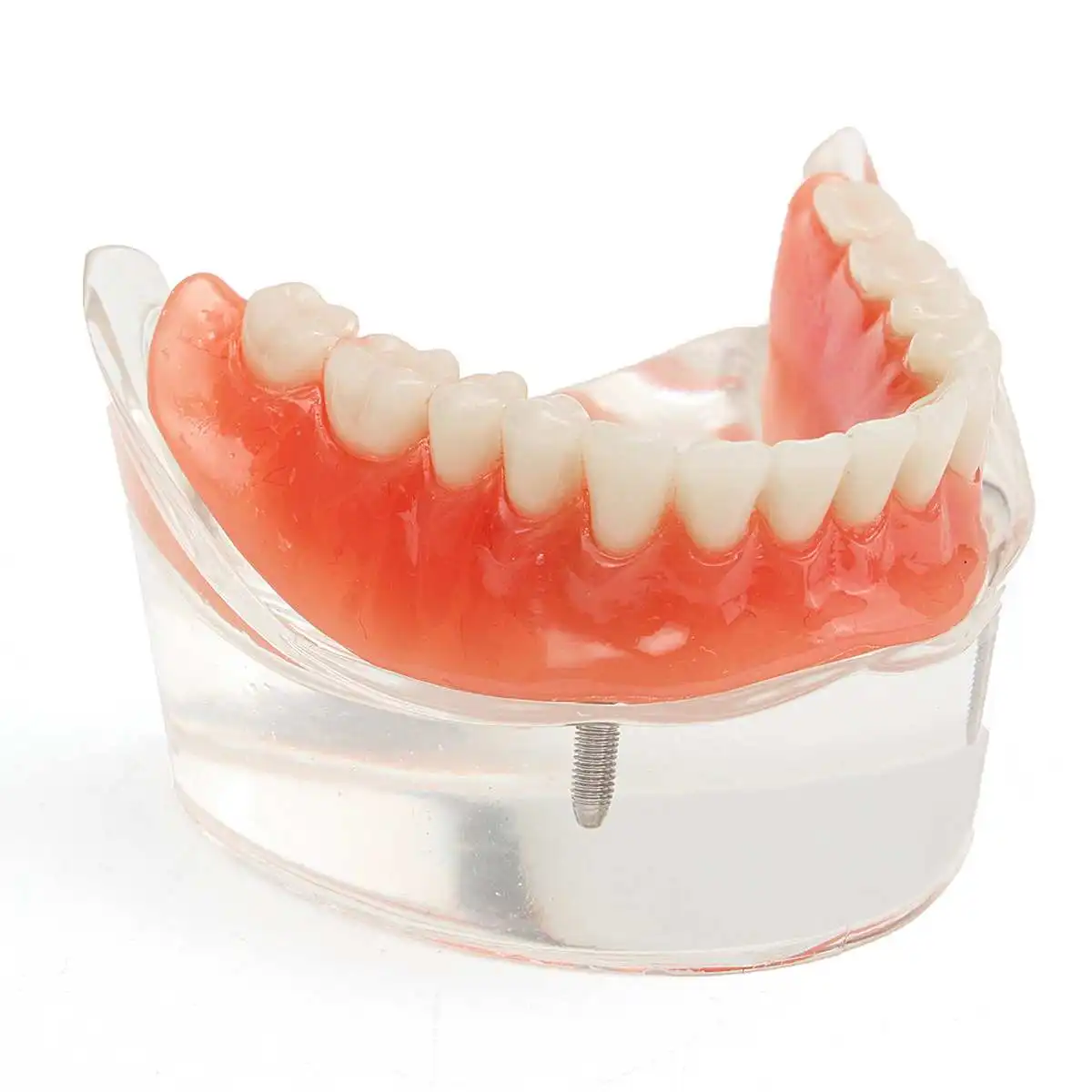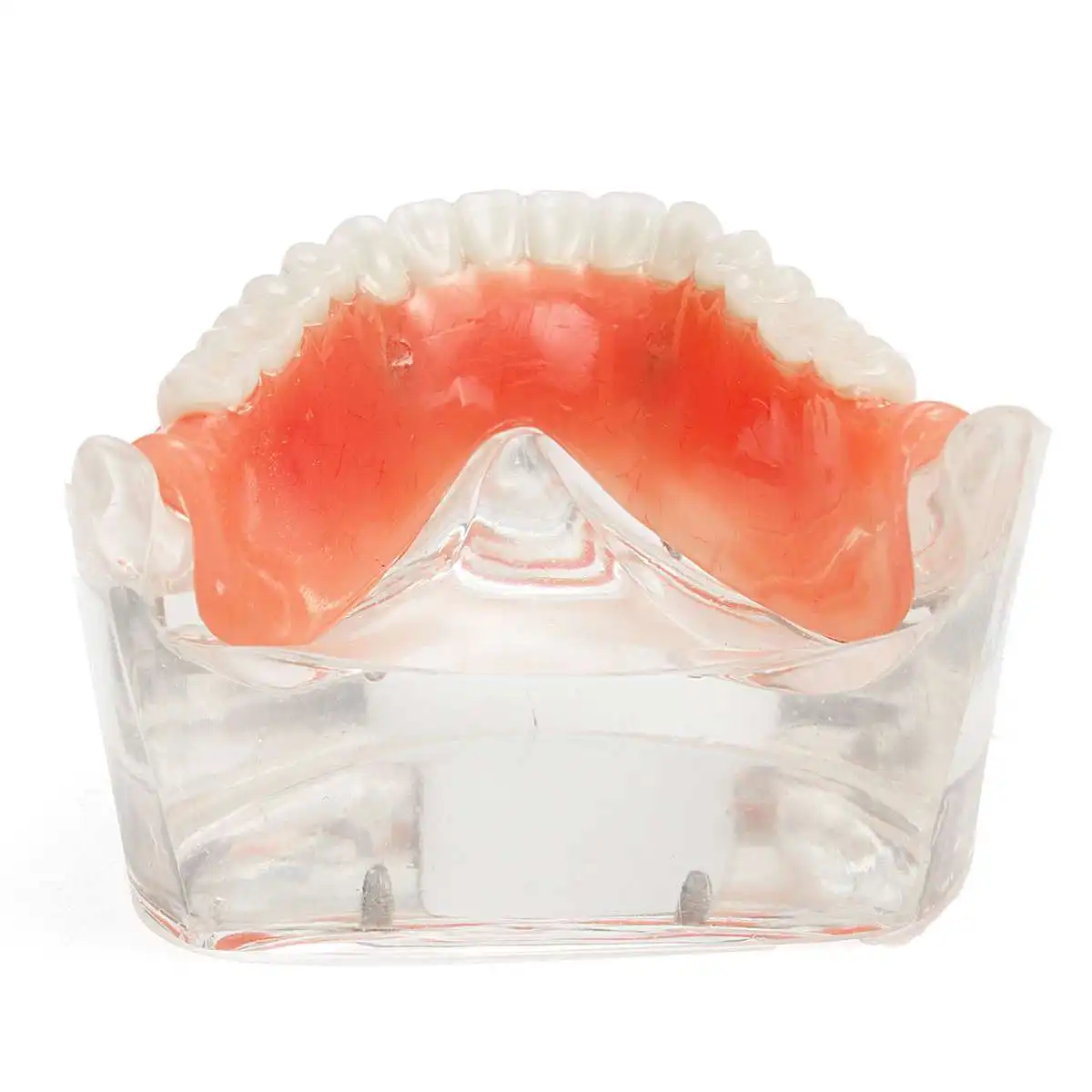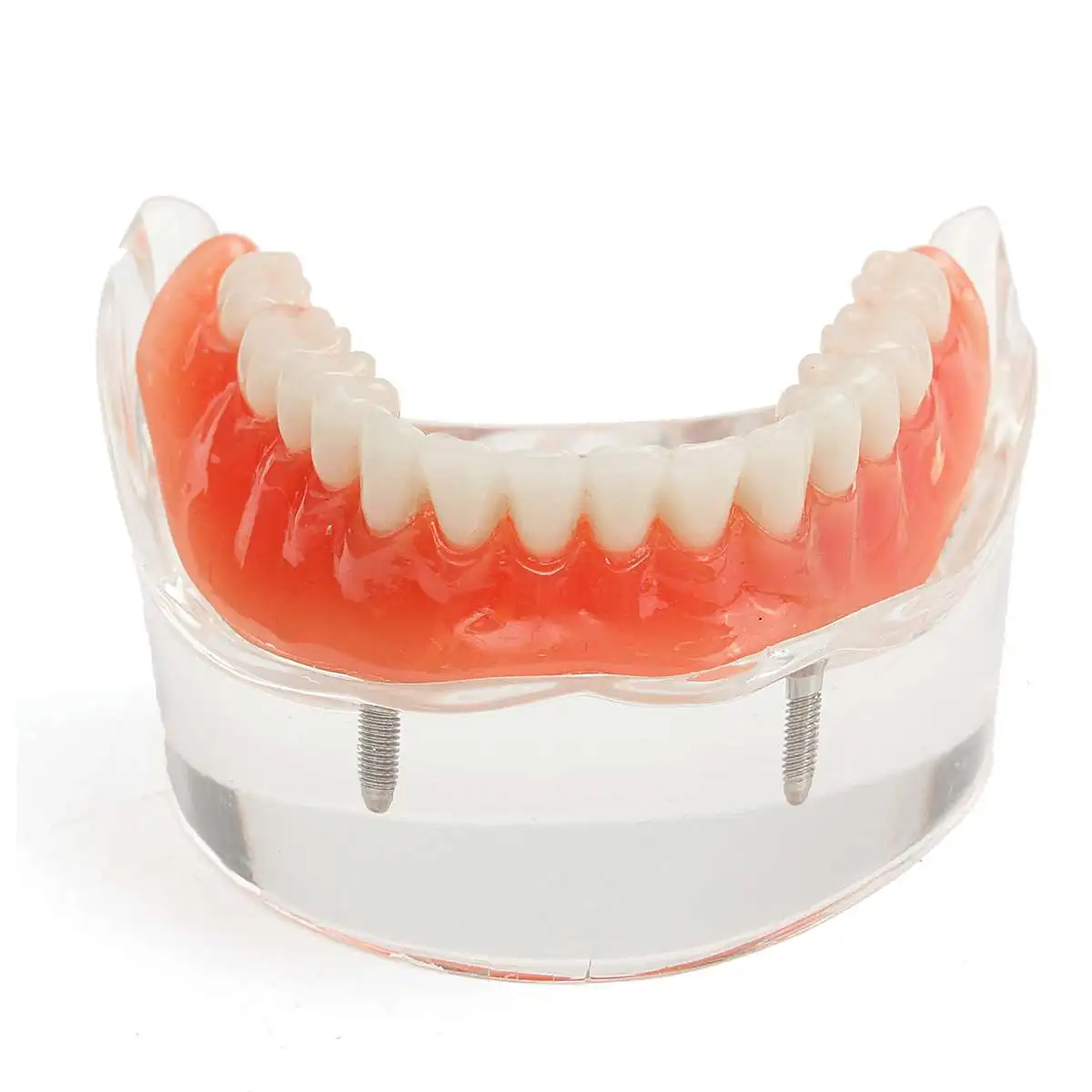 Прозрачное акриловое основание нижней челюсти позволяет просматривать имплантаты.