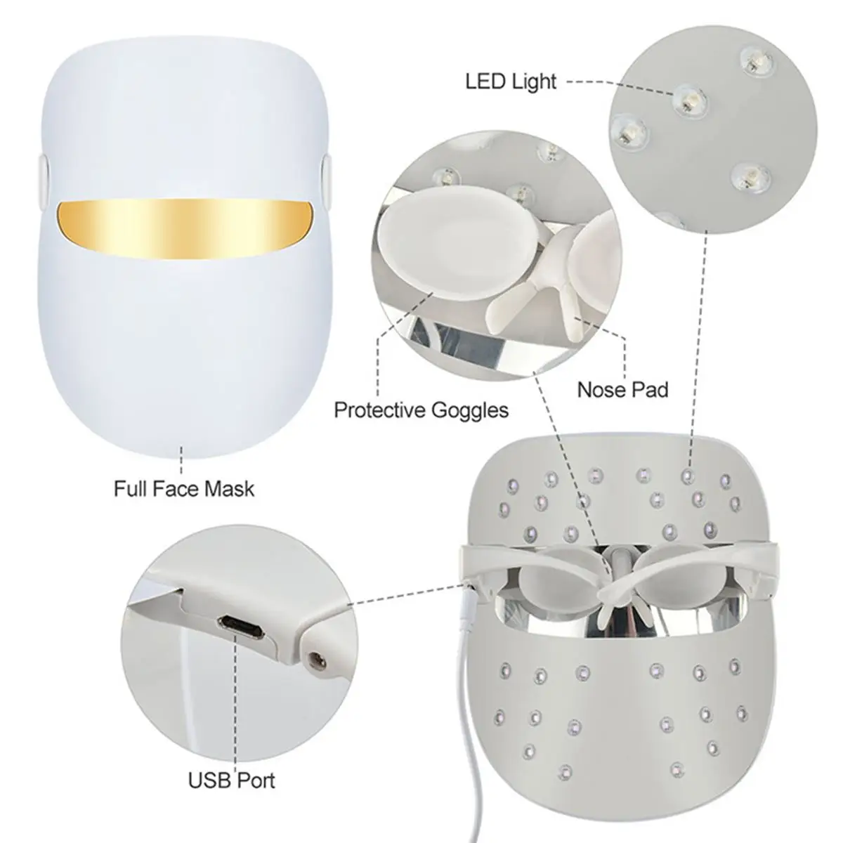 ◆ Красный светильник 630nm: улучшает активность клеток, ускоряет обмен веществ и способствует образованию коллагена. Он имеет отбеливание, осветление, омоложение кожи и удаление морщин, Повышение эластичности кожи, улучшение состояния кожи, восстановление поврежденной кожи, уменьшение пор и затягивание кожи.