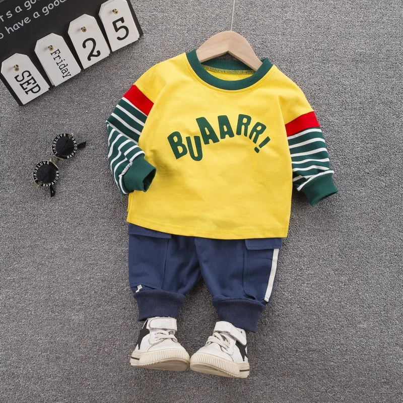Новинка, демисезонная одежда для маленьких девочек, детская хлопковая Футболка для мальчиков, брюки, 2 шт./компл., модная одежда для младенцев, для малышей, детские спортивные костюмы, От 0 до 4 лет