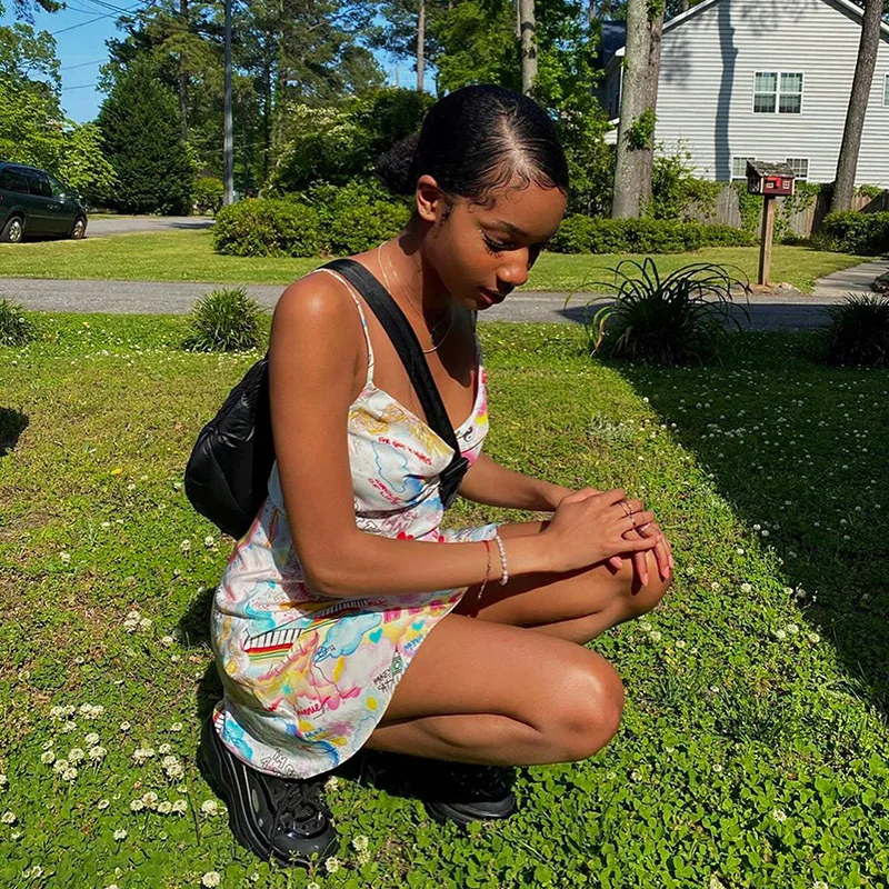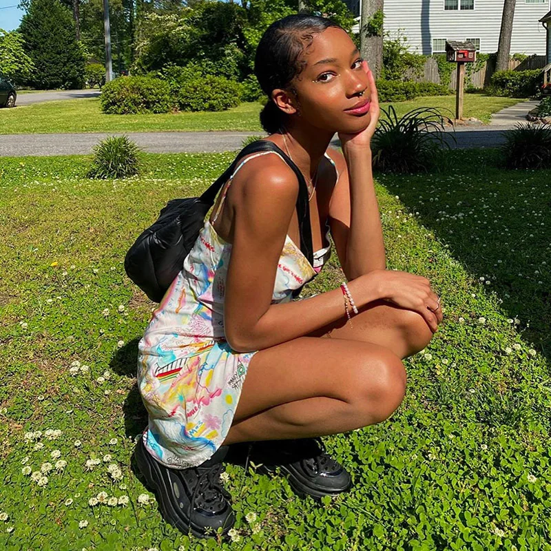 Новинка 2020, женское платье на подтяжках с v-образным вырезом, модное уличное фото, модное платье с принтом y2k, флуоресцентная краска для галстука