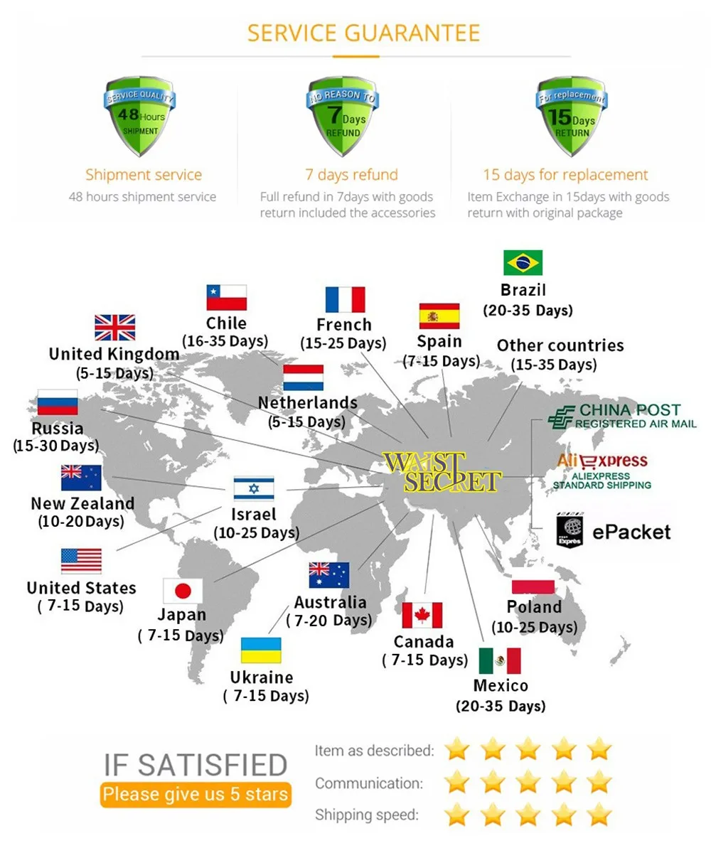 - Return : If there any quality problems ,please offer detailed information to us within 7 days after you receive the parcel,we will confirm the problem and then offer a satisfying soultion to you.All return item must be original package and please offer the tracking number. - Feedback : We maintain high standards of excellence and strive for 100% customer satisfaction! Feedback is very important! We request that you contact us immediately BEFORE you give us neutral or negative feedback, we will do our best to solve any problems and provide you with the best customer services. We appreciate 5-star positive feedback, It's good for our longterm business. We will also send the same feedback to you.
