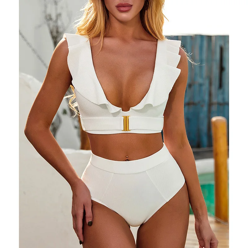 Набор пуш-ап бикини с рюшами купальники высокой талией женские купальные костюмы