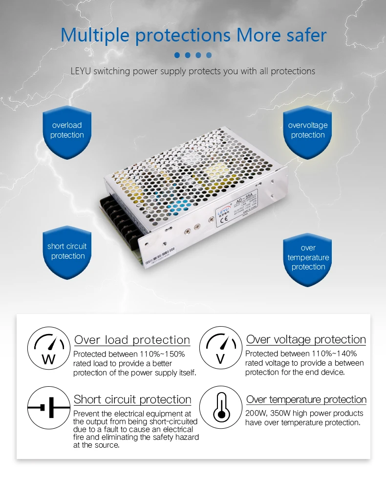 Диапазон напряжения | 88 ~ 264VAC 47 ~ 63Hz; 124 ~ 370VDC | |||