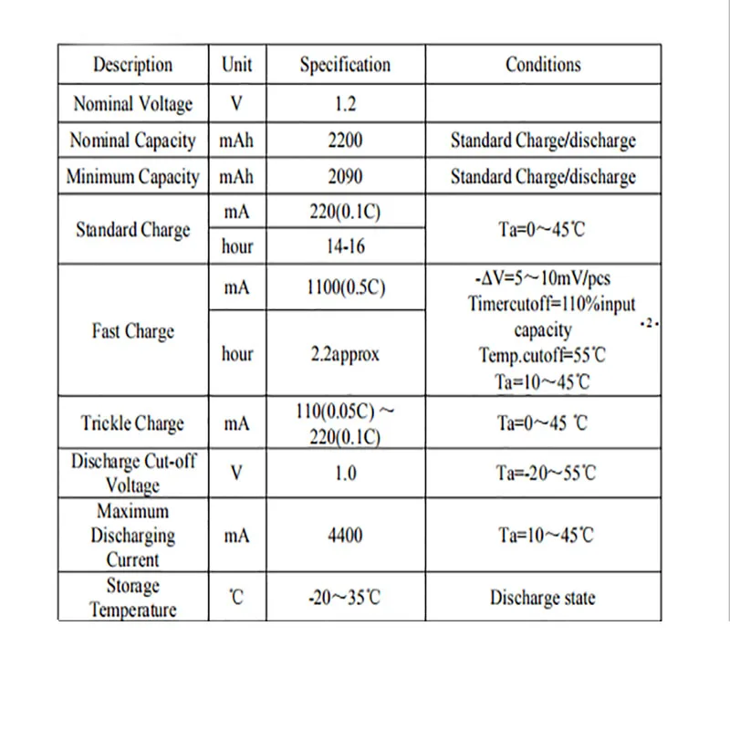 Тип батареи: 1,2 V Ni-MH AA 2200mAh аккумуляторная батарея